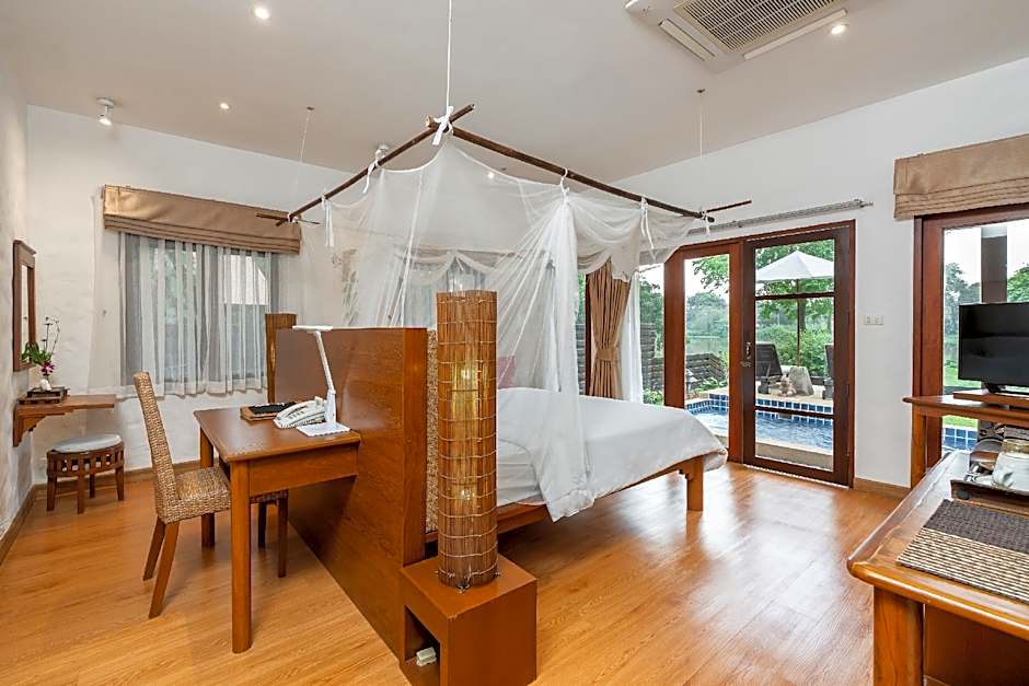 This large villa features a canopy bed, large riverfront patio and private swimming pool.